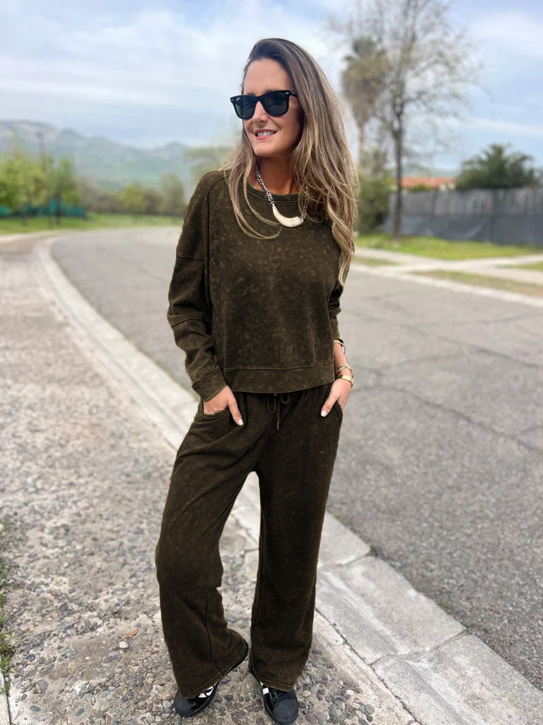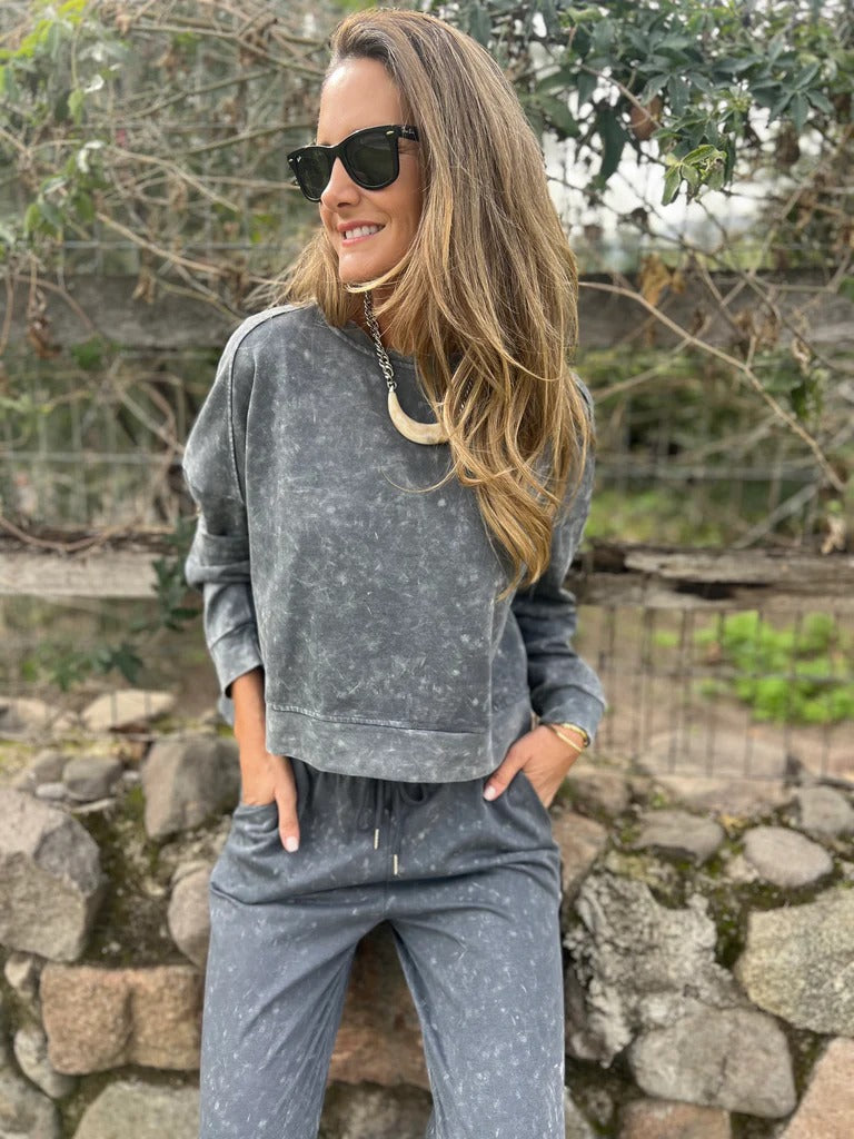 This effortlessly cool lounge set is designed for ultimate comfort while keeping your style on point. With a relaxed fit, soft washed finish, and versatile design, it’s perfect for everything from lazy weekends at home to casual outings.