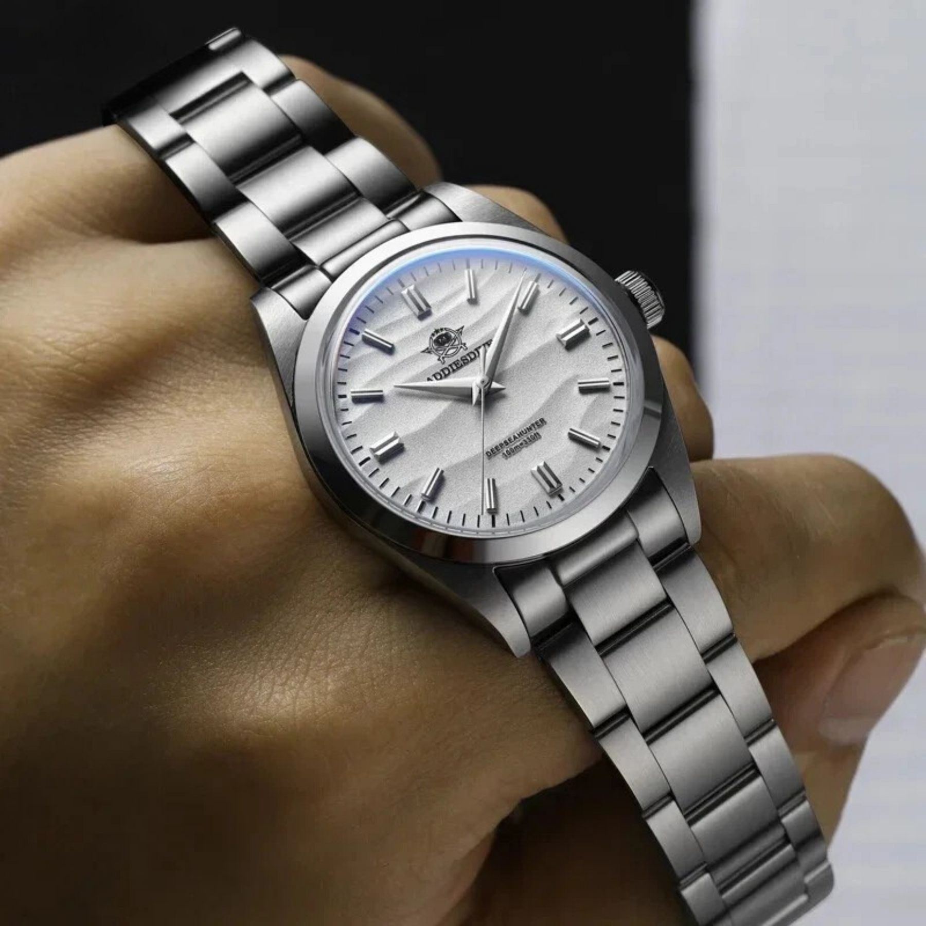 - Sand-textured dial